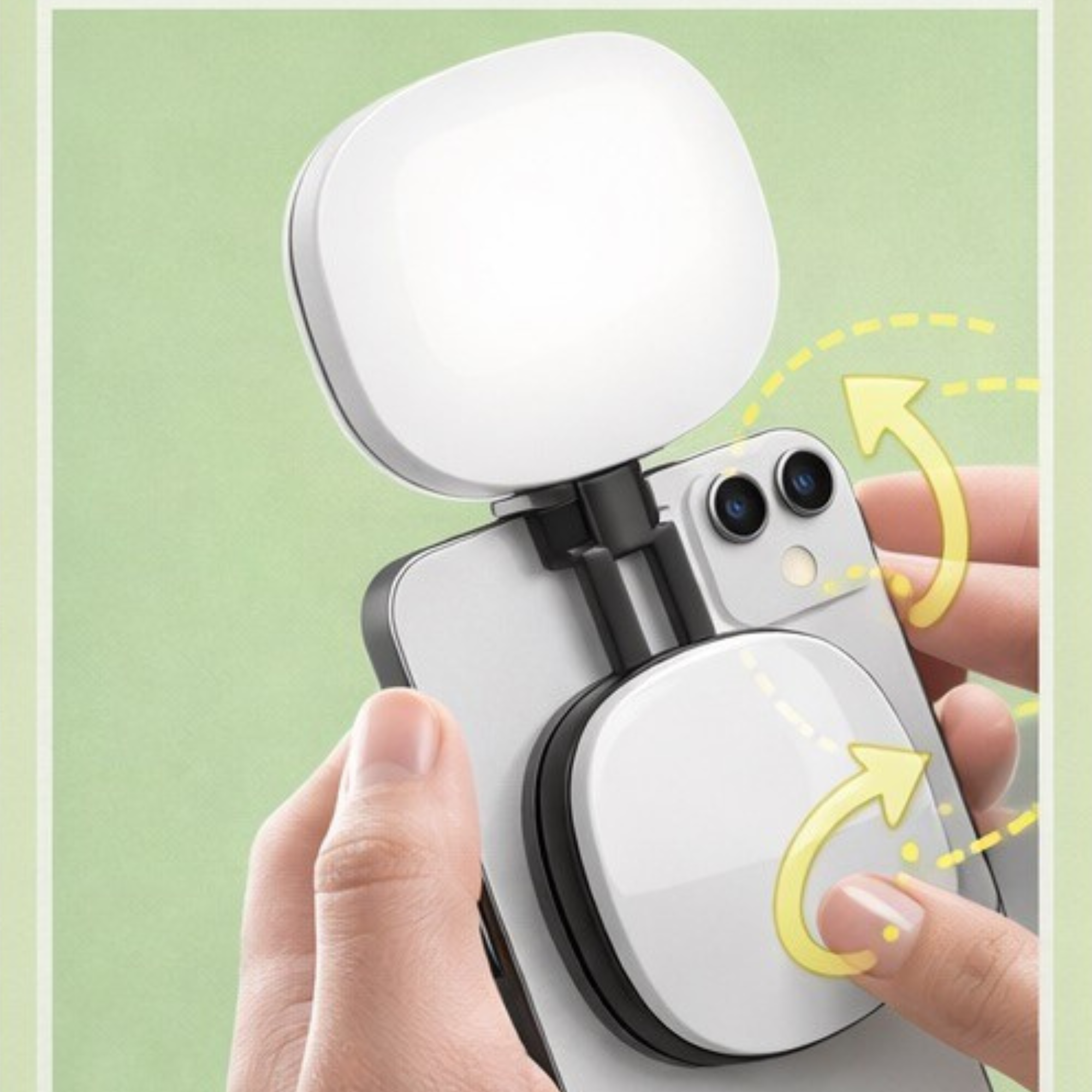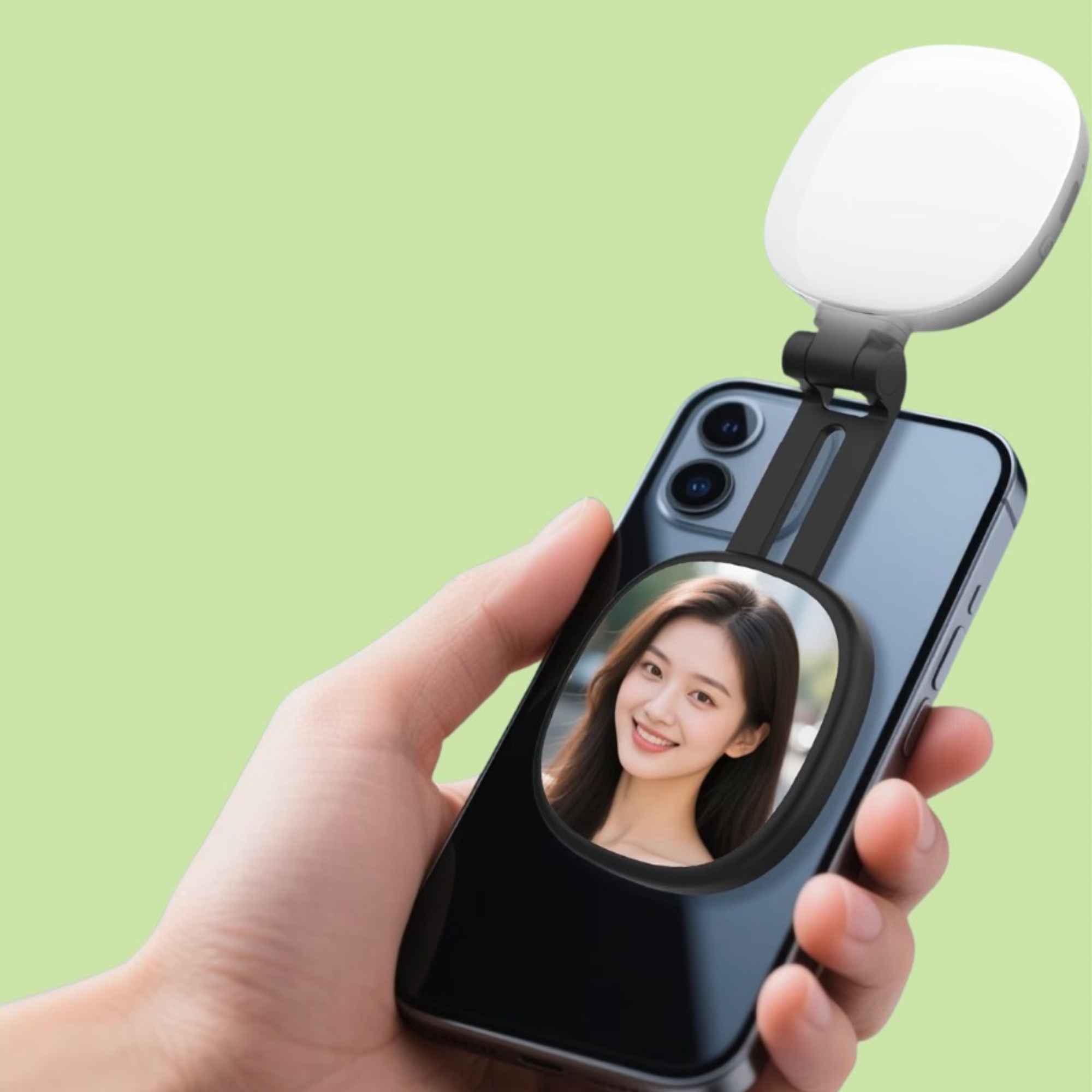 - Portable magnetic LED light ideal for selfies, makeup and video